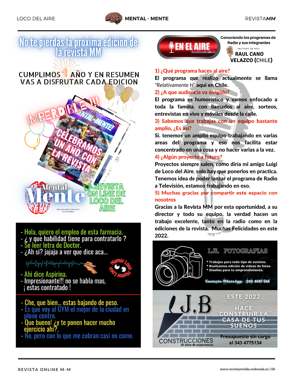 Ya salío la edición Enero de 2022 de la Revista MM 7 Páginas a todo color... Notas, novedades, noticias... Entra a la Página de la Revista y comprobalo vos mismo... Instagram: revista.mm Facebook: revista mm Web: www.revistammlda.webnode.es